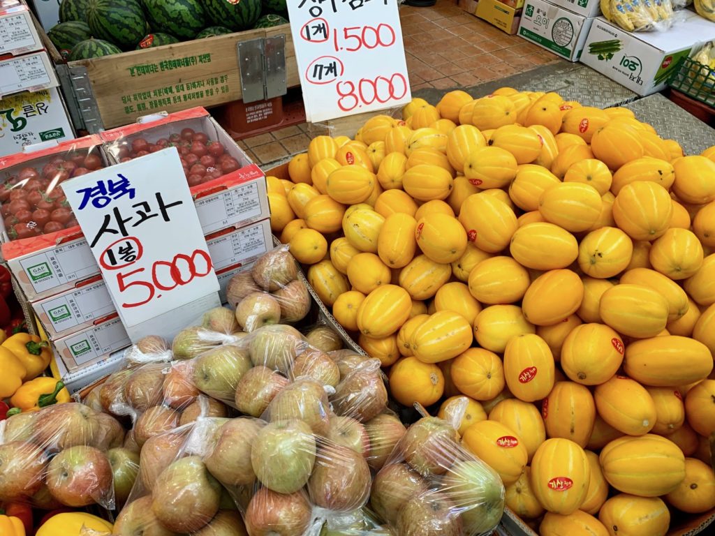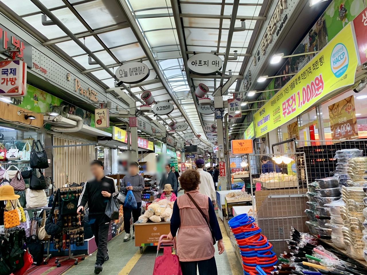 市場の敷地面積は208㎡、市場の建物は2階建てで面積は112㎡、約110店舗のほか、周辺に露店も出ている。ロータリーの徒歩圏内には高層アパートも多く、地域住民が日常の買い物に訪れる。旬の青果や水産物、精肉などの食料のほか、生活雑貨や衣料品、化粧品などの店が雑多に並ぶ。トッポッキやチキン、チヂミ、カルグクスなど、市場グルメも充実、ローカルな市場の雰囲気を感じることができる。