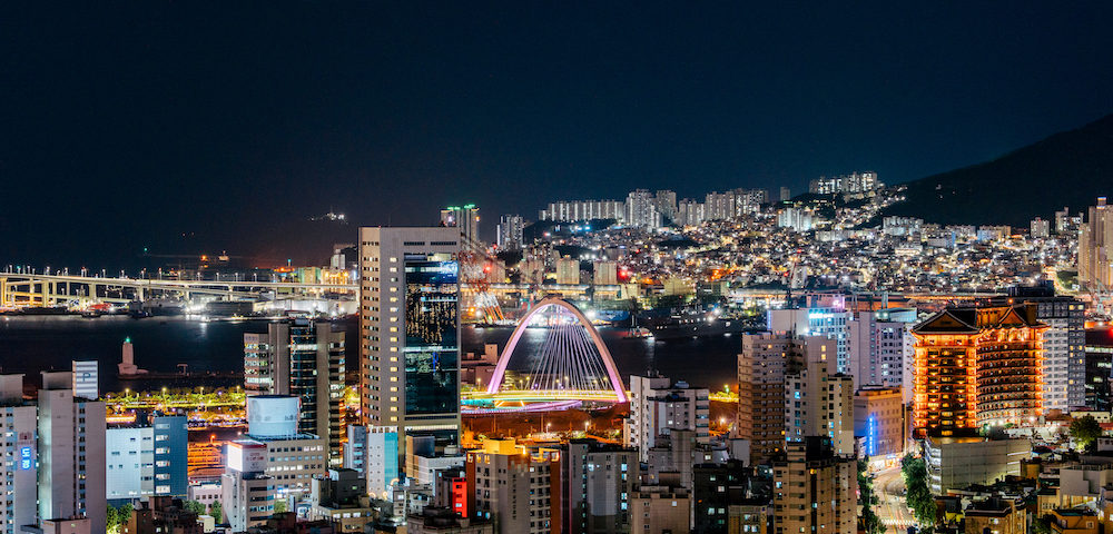 中央公園近く、山腹道路にある「瀛州ハヌルヌン展望台」。東区に広がる旧市街、釜山港、影島の景色が楽しめる。また、最近では釜山の夜景スポットとしても評判で、夕方以降は街の灯りとその向こうにライトアップされた釜山港大橋の姿が目にできる。展望台にあるオブジェを絡めての撮影も人気。釜山定番の散策コース「草梁イバクキル」とセットで歩くのもおすすめ。